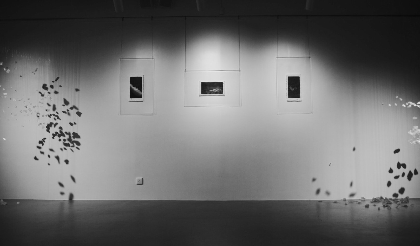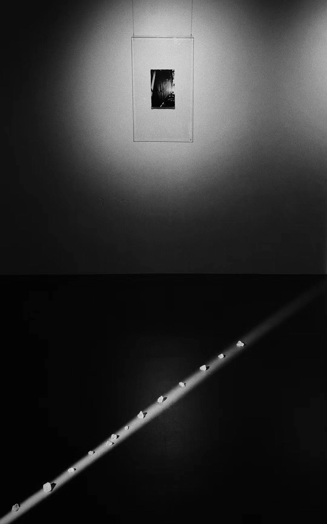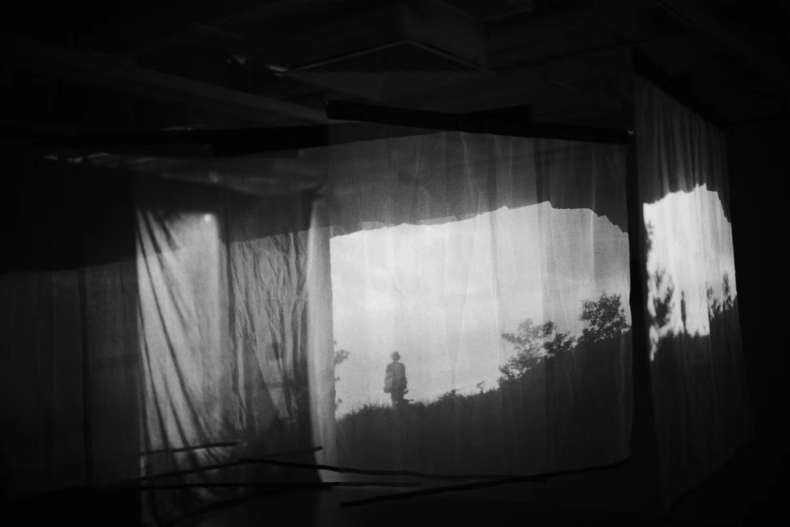 錄節目這天下午,她用視頻連線的方式帶我看展:鉑金印相、宣紙、明礬、輕紗、光影、聲音,這些物料和影像模擬出來的混沌潮濕的記憶片段,構建出一個時空錯置的獨特所在。視覺藝術的魅力很難用語言轉譯,我們順着她小時候學攝影的經歷,一路從她的家鄉瑞安聊到現在定居的香港,也聊了聊展覽內外與記憶有關的人事物。